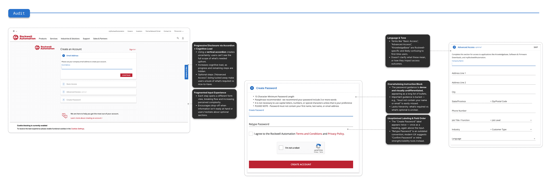 Delivered an interim iteration of the Access Hub by introducing guided journeys, copy refinements, and minimal visual adjustments enabling Rockwell to improve usability and roll out critical flows ahead of the full system redesign.